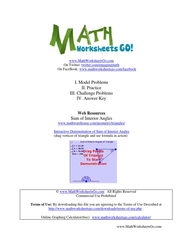 Triangle Interior Angles Worksheet Pdf And Answer Key